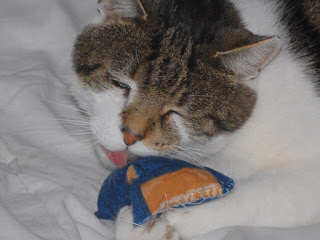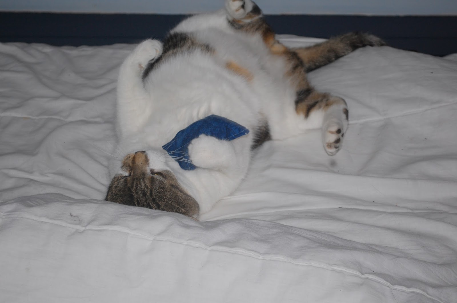 Heerlijk, deze berichten als je geen inspiratie hebt! Ik lees je blog erg graag, maar de kiekjes van de katten vind ik helemaal geen straf! Ik ga ook eens een zakje maken voor poes. groetjes Esther