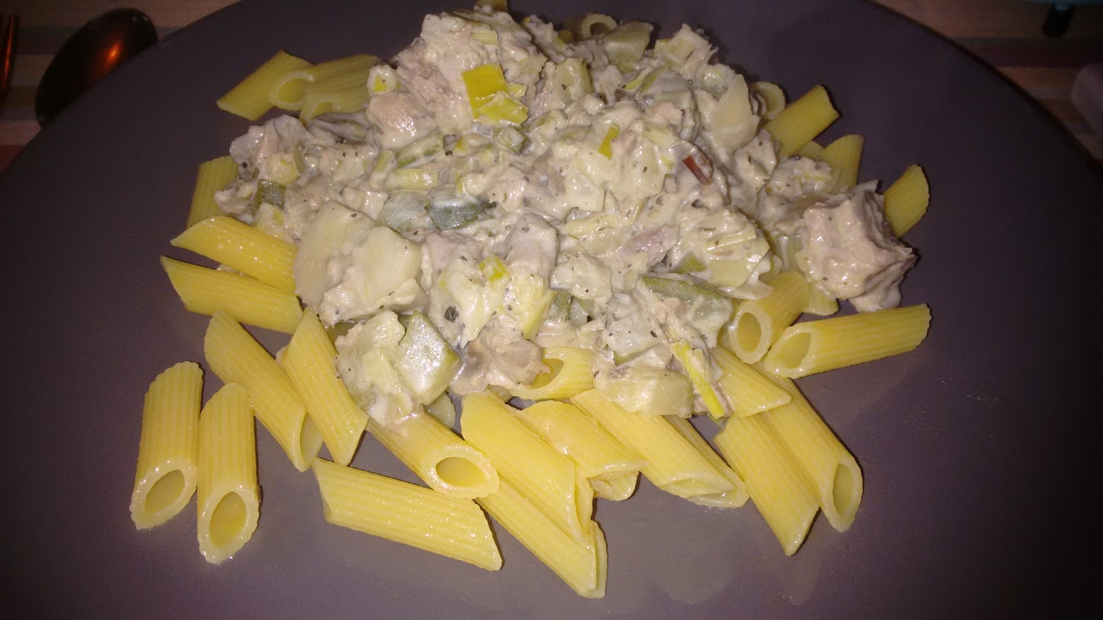 Toen ik, nu 2,5 jaar geleden al weer, op aanraden van een diëtiste glutenvrij ging eten – om te kijken of dit een oplossing voor mijn eeuwige darmproblemen zou zijn – kocht ik glutenvrije pasta bij de Lidl. Mwah, niet echt een succes. Als we tegenwoordig pasta eten, maak ik voor mezelf een alternatief van slierten courgette, zoete aardappel of knolselderij. Dat vind ik veel lekkerder en het is ook nog eens veel gezonder. En ik heb ook heerlijke bij Pit & Pit gekochte pasta op basis van bruine rijst in huis. En dus bleef er een half zakje glutenvrije pasta van de Lidl in de kast staan. Weggooien doen we niet aan maar opeten gebeurde ook niet, tot ik mezelf een schop onder de kont gaf. Dus aten we zondag: pasta met prei, courgette en tonijn en heel veel knoflook. De mannen aten gewone pasta en ik de glutenvrije. Excuses voor de slechtste foto ooit: