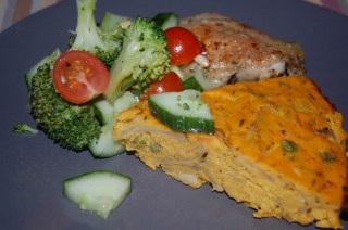 Normaal kookt mijn moeder op dinsdag voor ons maar die belde af omdat ze zich niet lekker voelde. Ik moest dus even improviseren wat makkelijk ging want er was zat in huis. Omdat er wat van de schotel van maandag was overgebleven wilde ik de restjes gebruiken voor een zoete aardappeltaart. Zo gezegd, zo gedaan, de taart zag er heerlijk uit en we aten er broccolisalade en kip uit de oven bij. Maar de taart was vies, echt vies. Zeg ik niet snel, maar getver wat was het goor. Het smaakte heel vreemd zuur. Gelukkig was het kippetje heerlijk en de kluifjes en botten werden niet weg gegooid maar ingevroren. Daar gaan we bouillon van trekken.