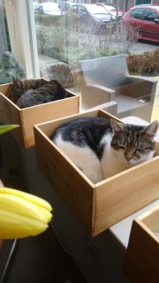 3. Heel erg mooie admin bakjes! En ik vind de kattenkistjes tien keer mooier dan JdB vazen. Weinig zo decoratief als een kat in de vensterbank.