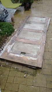 Soms zijn we te laat met echt iets te gebruiken voor als ooit. En dat is dan meestal mijn schuld. Zo sleepte ik tijdens een aanval van opruimwoede 2 oude deuren die opgeknapt moeten worden uit de schuur. En dan heb ik het over echt heel erg opknappen wil het ooit nog wat worden. Maar wel paneeldeuren, dat dan weer wel. Die al 8 jaar vreselijk in de weg stonden in de toch al veel te kleine schuur. De té kleine schuur waar ik dit najaar onze tuintafel in wilde zetten. De tafel kan worden ingeklapt en past dan net in de schuur, als die klote deuren daar dan niet verschrikkelijk in de weg zouden staan, al 8 jaar dus. Even denken: links op de weegschaal van het geweten rot deuren die al 8 jaar wachten op een opknapbeurt en verschrikkelijk in de weg staan (al 8 jaar, ik zeg het nog maar eens) óf  rechts onze mooie tuintafel netjes opbergen zodat deze niet weg rot en we die kunnen blijven gebruiken.