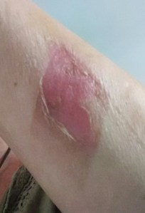En nu? Heeft er iemand tips hoe ik voorkom dat het een groot litteken wordt? Dat ben ik vergeten te vragen aan de huisarts. Toen ik jaren geleden in de keuken werkte gebruikte ik aloe vera, maar dat waren over het algemeen iets kleinere brandwonden.Lot schreef dat ze ervaring heeft met brandwonden en Tineke ook? Wat smeerden jullie erop na die eerste periode? Iemand anders een goede tip? Even ter indicatie, het is niet heel groot, het is een tweedegraads brandwond maar het zit op een klote plek op mijn onderarm. Voor de nieuwsgierigen de foto hiernaast. (Oogjes dicht als je daarvan gruwt 😉 )
