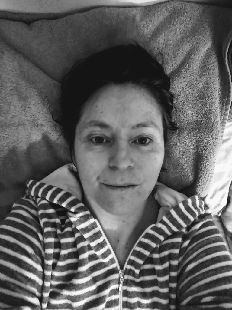 Er straalt iets sereens van je af als ik deze foto zie. Vermoeidheid maar ook iets van een zachtheid die heel ontroerend is. En een Mona Lisa-achtige glimlach. Fijn dat je kon douchen. Ik hoop dat de landing zacht zal zijn.