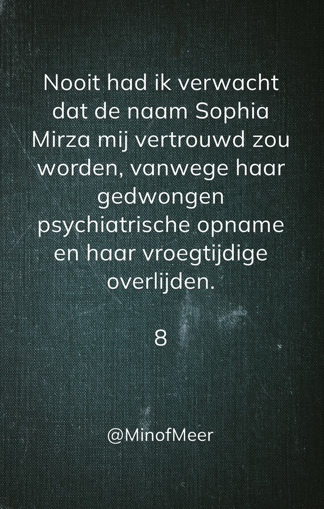 Nooit had ik verwacht dat de naam Sophia Mirza mij vertrouwd zou worden, vanwege haar gedwongen psychiatrische opname en haar vroegtijdige overlijden.