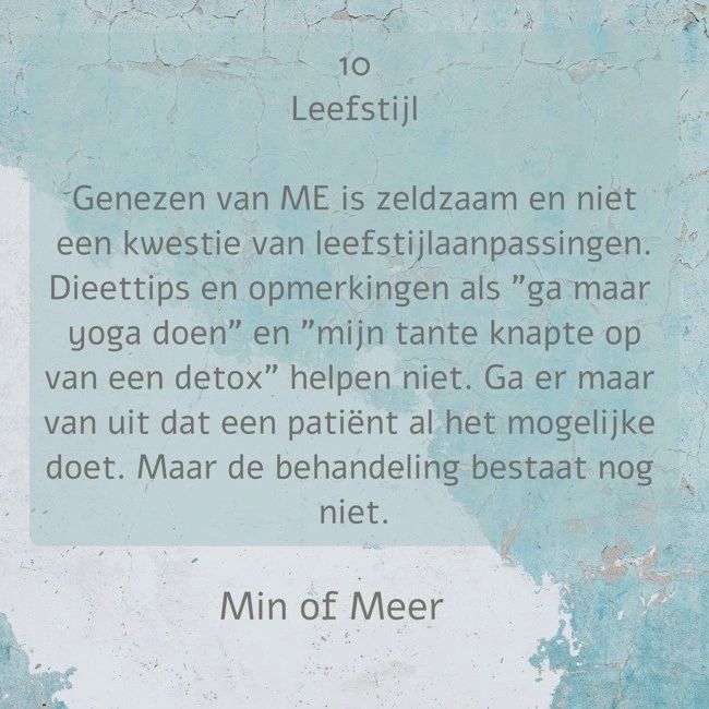 Informatie over ME 6 mei 2024 ~ MB Mei ME awareness maand Dit delen: Klik om dit te e-mailen naar een vriend (Opent in een nieuw venster) E-mail Klik om te delen op X (Opent in een nieuw venster) X Klik om te delen op Facebook (Opent in een nieuw venster) Facebook Vind-ik-leuk Aan het laden... Gerelateerd Gepubliceerd door MB Schrijft over leven met de ziekte ME. Bekijk alle berichten van MB