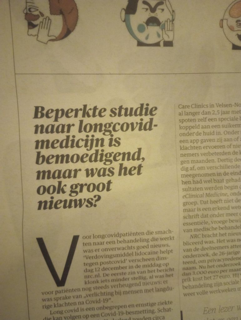 Vorige week schreef ik een kritische reactie op het artikel in NRC over een Nederlands onderzoek naar de effecten van het verdovingsmiddel lidocaïne op post covid patiënten.