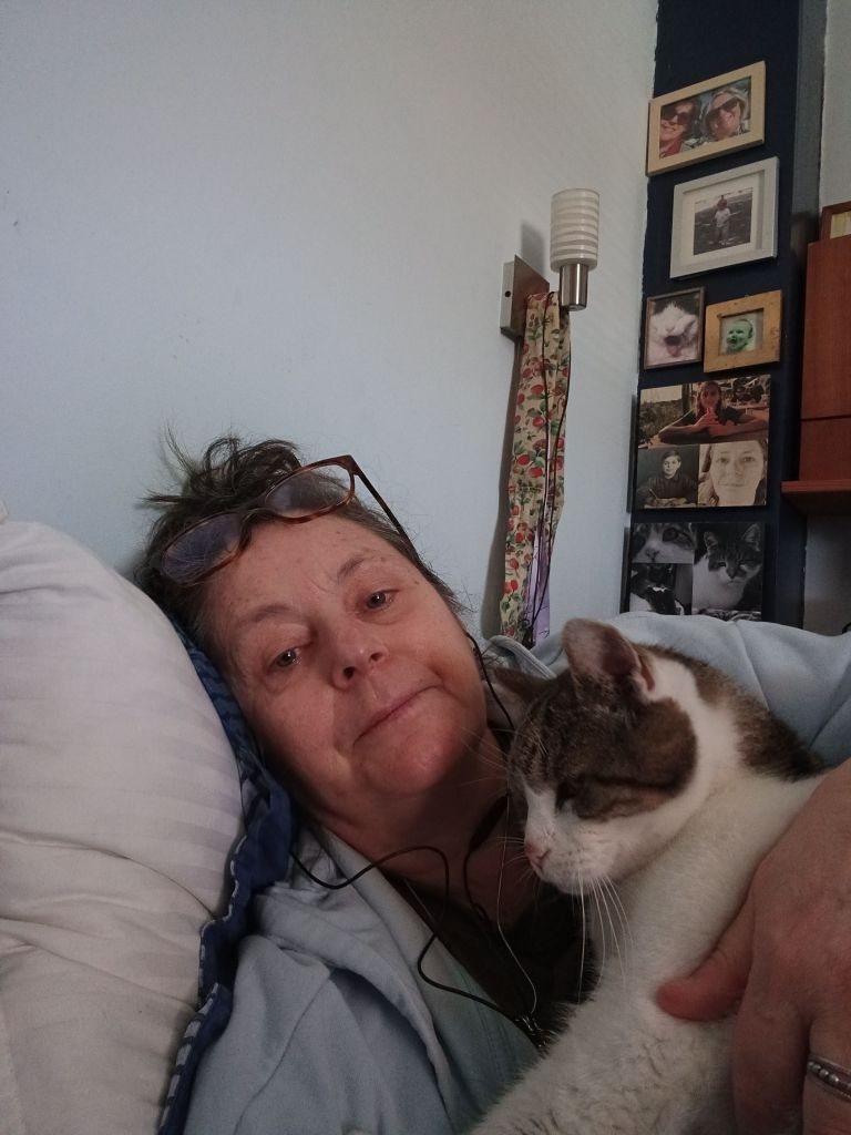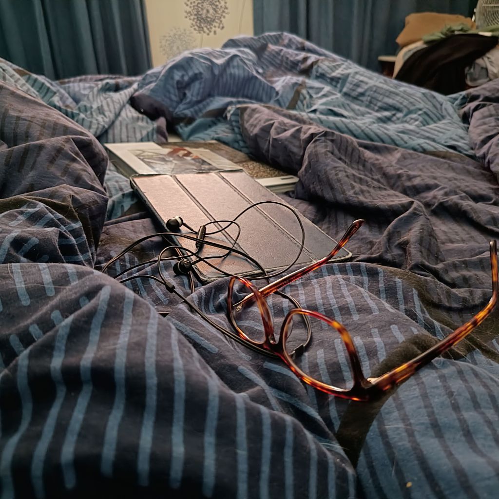 Tegenwoordig ben ik 22/7 bedgebonden. Al houd ik het niet bij met een stopwatch. De ene dag wat meer uit bed, de andere dag wat minder. Om me te wassen, naar het toilet te gaan, en op goede dagen om naar beneden te gaan. Soms een halfuurtje, soms een paar uur.