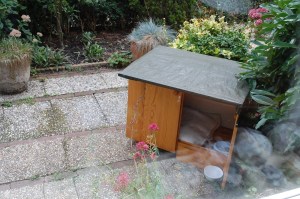 Sinds mei geven wij een zwerfkat te eten, Dibbes. Het beest was uitgehongerd en verwaarloosd en had – zo leek het – flink ontstoken ogen. Hij was ook extreem schuw dus het duurde maanden voordat het lukte om zijn vertrouwen te winnen. Regelmatig eten doet wonderen, evenals een probiotica- en een antibioticakuur. We zagen na maanden geduld eindelijk normaal kattengedrag: zichzelf lekker rekken en strekken na het eten en dan uitgebreid poetsen en vooral veel dutjes doen. Ook werden de rondes dat hij op stap ging steeds beperkter en kleiner en nam hij zijn intrek in de voortuin.