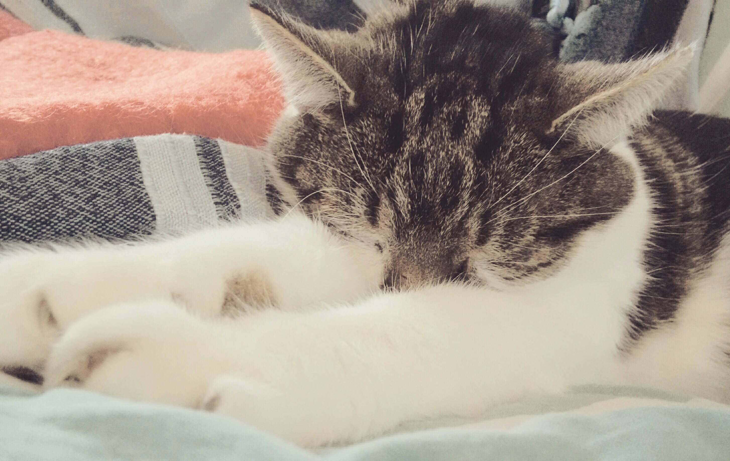 Vandaag vieren we de magische transformatie van Dibbes van zwerfkat naar huiskat.