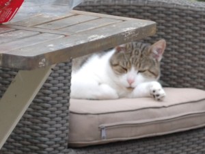 Dierenarts droop dus weer af, met achterlating van het spuitje en instructies hoe we dit konden toedienen. We hebben eerder wel eens injecties toegediend bij Smoes dus dat zou moeten lukken. De band tussen mens en dier was helaas zo verstoord dat we het er maar bij hebben laten zitten. Dibbes heeft de hele middag onder ons bed gezeten en vloog in de namiddag het huis uit. Hij weigerde naar binnen te komen, wel kon ik contact met hem maken en miauwde hij zijn stress van zich af.
