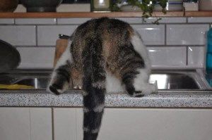 Dibbes is dus ‘alleen’ in een huishouden van drie katten en richt zich vooral op ons. Maar wat we ook doen het is nooit genoeg. Hij heeft altijd honger, honger naar eten, naar knuffels, naar spelen en naar aandacht. Als ik in de ochtend wakker word, staat hij op me te prakken. Als ik naar beneden loop, rent hij achter me aan. Zit ik op de WC, staat hij voor de deur te gillen. Ben ik aan het koken, dan staat hij pal achter me. Wil ik één van de andere katten aaien, dan gooit hij zich ervoor. Zit ik te eten, dan ligt hij onder mijn stoel.