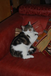 In de avond moest hij even afreageren en zagen we wat mepwerk tussen de katten maar later kroop hij lekker tegen me aan in bed en was alles weer goed. Het verbaast me hoe snel hij van zwerver naar huiskat is gepromoveerd toen hij eenmaal over zijn angst heen was.