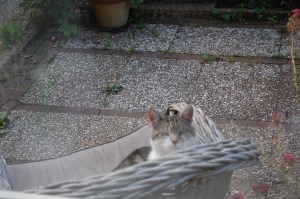 Sinds mei geven wij een zwerfkat te eten, Dibbes. Het beest was uitgehongerd en verwaarloosd en had – zo leek het – flink ontstoken ogen. Hij was ook extreem schuw dus het duurde maanden voordat het lukte om zijn vertrouwen te winnen. Regelmatig eten doet wonderen, evenals een probiotica- en een antibioticakuur. We zagen na maanden geduld eindelijk normaal kattengedrag: zichzelf lekker rekken en strekken na het eten en dan uitgebreid poetsen en vooral veel dutjes doen. Ook werden de rondes dat hij op stap ging steeds beperkter en kleiner en nam hij zijn intrek in de voortuin.