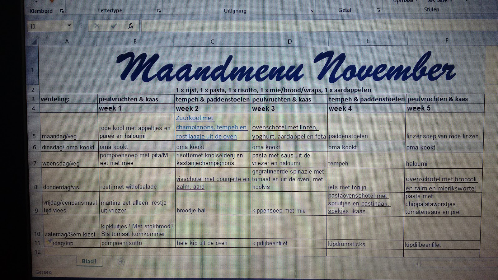 Zoals ik hierboven schreef. We eten om de dag vegetarisch. Als we vlees of kip of zo eten, dan is het niet veel. De nadruk ligt op groenten en daarbij eten we dan wat rijst/aardappelen/wraps met vlees/vis/kip…