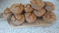 Omdat ik ook nog een enorme voorraad kokosmeel heb (inmiddels 1,5 jaar over datum maar het ruikt en smaakt nog prima), bakte ik ook ontbijtkoekmuffins, gezoet met banaan. Zo, en dan ga ik nu naar buiten kijken waar ondanks de zon nog steeds wat sneeuw ligt….