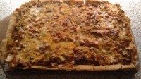 Normaal kookt mijn moeder op dinsdag voor ons maar die belde af omdat ze zich niet lekker voelde. Ik moest dus even improviseren wat makkelijk ging want er was zat in huis. Omdat er wat van de schotel van maandag was overgebleven wilde ik de restjes gebruiken voor een zoete aardappeltaart. Zo gezegd, zo gedaan, de taart zag er heerlijk uit en we aten er broccolisalade en kip uit de oven bij. Maar de taart was vies, echt vies. Zeg ik niet snel, maar getver wat was het goor. Het smaakte heel vreemd zuur. Gelukkig was het kippetje heerlijk en de kluifjes en botten werden niet weg gegooid maar ingevroren. Daar gaan we bouillon van trekken.