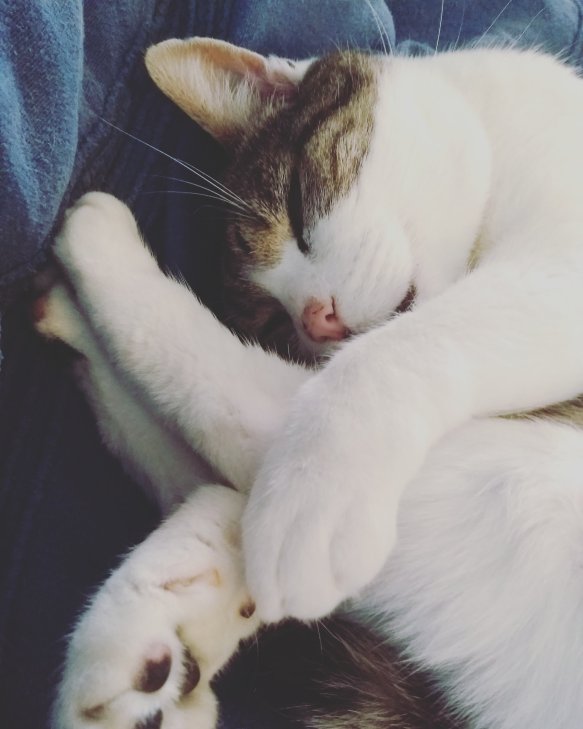 De eerste paar jaar was het vreemd genoeg nog wel mogelijk om hem – toen hij eenmaal wat gewend was – op te tillen om bijvoorbeeld een pilletje te geven. Maar blijkbaar is hij dat gaan associëren met vervelende dingen, dus dat lukt niet meer. Het vreemde is dat hij wel heel aanhalig is. Ligt in bed tegen mij aan, vraagt aandacht op het opdringerige af, geeft kopjes en kusjes en zit soms minuten lang neus aan neus met mij. Maar dat is allemaal op zijn initiatief. Benader ik hem, dan blijft hij schrikkerig.
