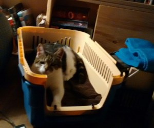 Nu wil ik het nu toch weer gaan trainen, zowel met Dibbes als met Gerrie. Ik moet toch iets. Dan maar wat later naar de dierenarts, nu eerst dit op orde krijgen. Van een lieve lezeres kreeg ik een reismand die een bovenlader is, dus met deksel aan de bovenkant. Daar kan je veel makkelijker een kat in zetten. Dus daarmee begon ik te oefenen.
