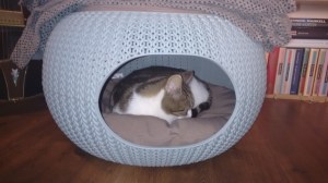 Op zich zag ik er niet heel erg tegen op, het aanstaande dierenartsbezoek met Dibbes. Maar spannend blijft het wel altijd met hem omdat het een hele toer is – ook na een paar jaar – om hem in de mand te krijgen. Training als in hem met lekkere hapjes en snoepjes laten wennen aan de mand werkte niet. Wel bij exzwerfkat Gerrie. Die wende in drie maanden op deze manier aan de mand en toen we zover waren dat het deurtje dicht kon en de mand kon worden opgetild was hij klaar om zijn leven als gecastreerde huismuts te beginnen.