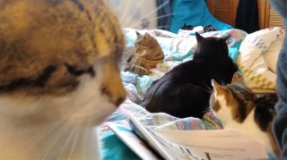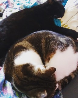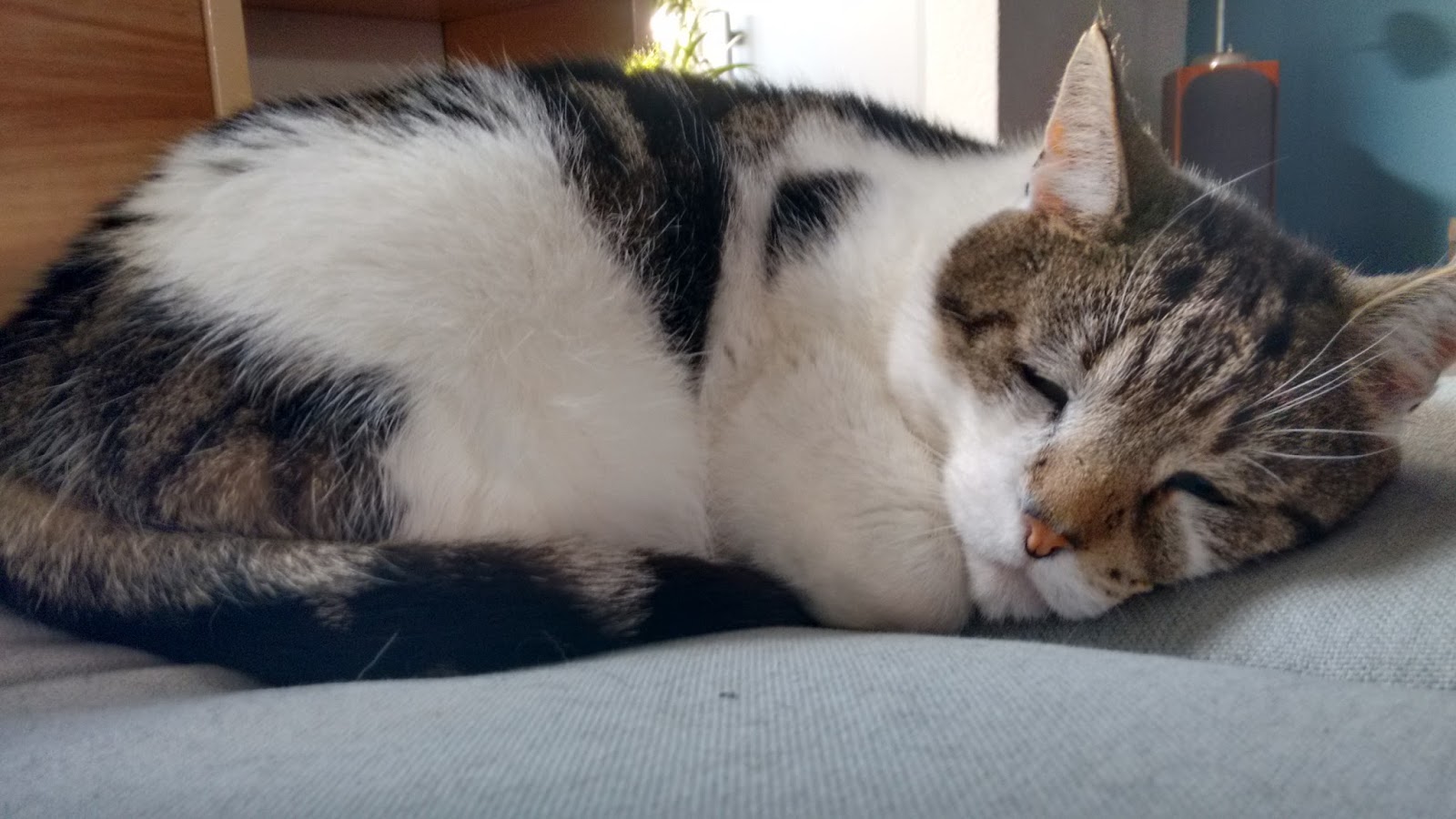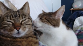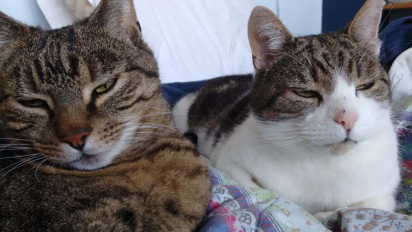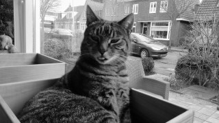 Dat we na een jaar nog een zwerfkat – en zijn evenbeeld – adopteerden was wel een kleine verstoring in het prille adoptiegeluk. Maar nu we weer twee jaar verder zijn sinds Gerrie hier kwam, is er wel een acceptatie ontstaan. Ze spelen – heel voorzichtig – met elkaar en zijn niet langer elkaars vijanden (dat waren ze op straat wel, elkaars concurrenten om eten).