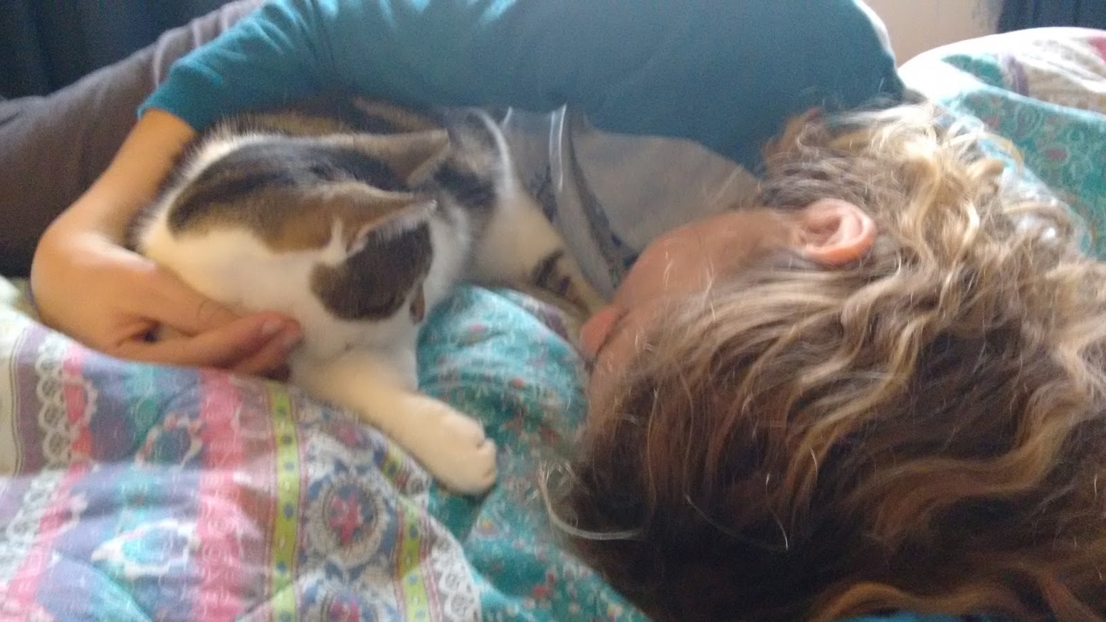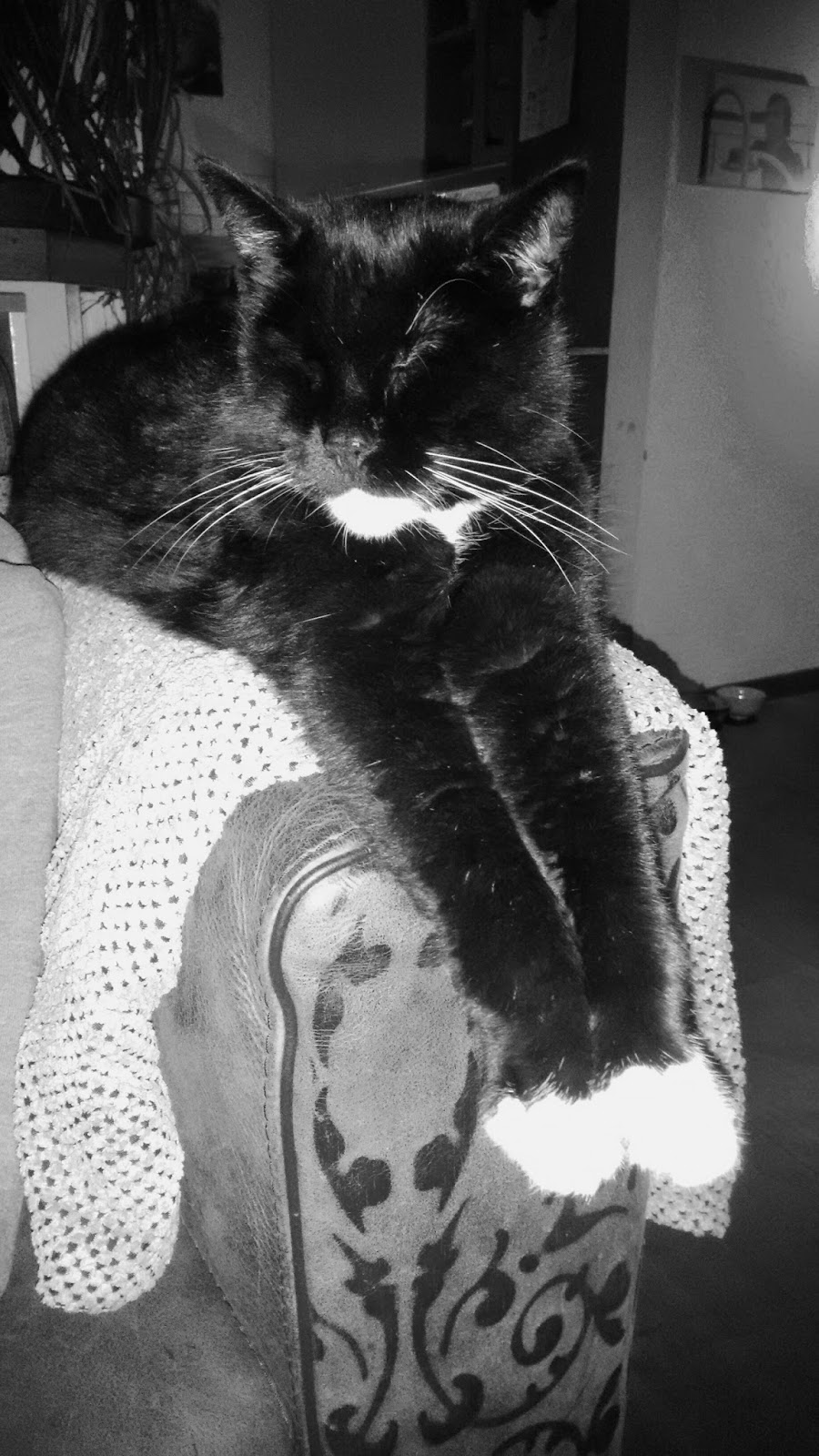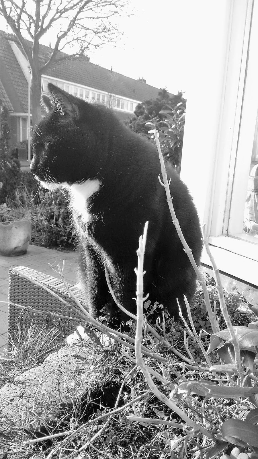 Daarna kon het echte werk beginnen want hij moest aan alles wennen en was erg onzeker en schrikkerig. Dibbes is een kat van extremen, hij kan héél erg ongelukkig en onzeker zijn maar ook genieten als geen ander.
