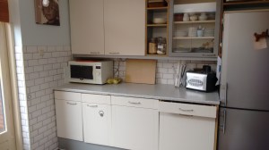 Inmiddels zijn we een paar maanden verder sinds de keuken werd verbouwd. Klaar zijn we nog niet, er moet nog steeds één en ander afgerond worden maar het komt er maar niet van. Eerst gingen we op vakantie, toen was ik beroerd en bleef ik beroerd, het nieuwe schooljaar begon, we werden ziek en snotterig en zo kwam er telkens iets tussen. Maar als het goed is gaat het binnenkort dan echt gebeuren. Het aanrecht moet nog worden afgekit, deurtjes strakker afgesteld en hier en daar moet nog iets weg gewerkt aan randjes.