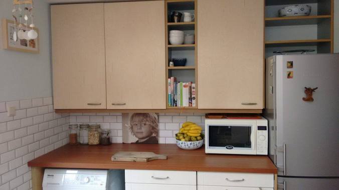 Het resultaat tot nu toe. Frontjes boven zijn klaar, aanrechtblad ook.