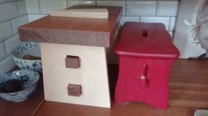 Des te trotser ben ik nu op M. Hij heeft de afgelopen jaren door veel uit te zoeken en uit te proberen zichzelf hout bewerken eigen gemaakt. Hij maakte een prachtige TV-kast, stripte onze keuken en bouwde deze weer op samen met kennis G., betegelde de keukenmuren en maakte en passant van rest materiaal een kruidenkastje en een handig opstapkrukje.