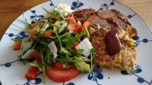 Lunch is meestal een salade of soep of roergebakken groenten. Omdat ik vaak groenten voorgesneden heb liggen in de koelkast, is dat niet veel werk. Kwestie van een bord pakken en vol gooien. Vaak bak ik er dan nog iets van zoete aardappel of knolselderij bij of pak ik een cracker, brood van zoete aardappel of pudla’s. Soms is er niets en dan maak ik een groentenomelet. Ik heb altijd voorgesneden groenten in de vriezer liggen dus dat is ook zo klaar.